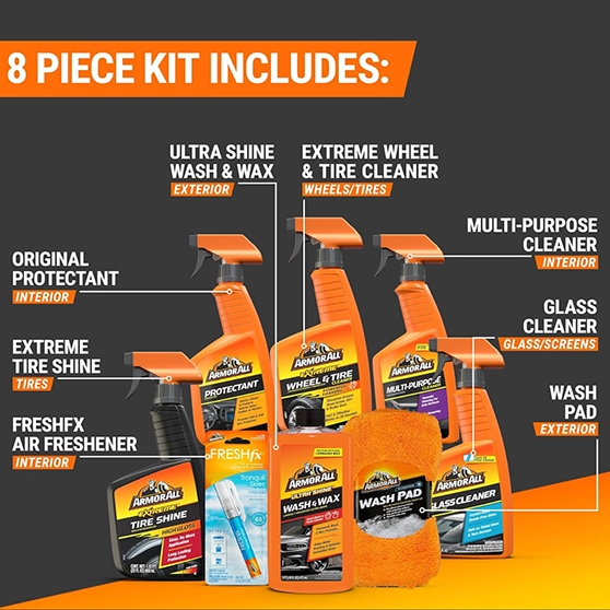 Dual-action car wash and wax for cars, trucks, and motorcycles. Cleans, shines, and protects vehicle surfaces in a single step for a long-lasting glossy finish.
