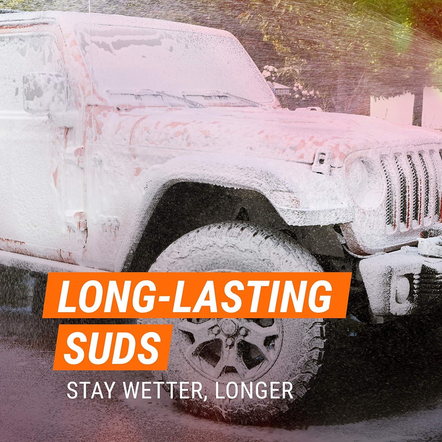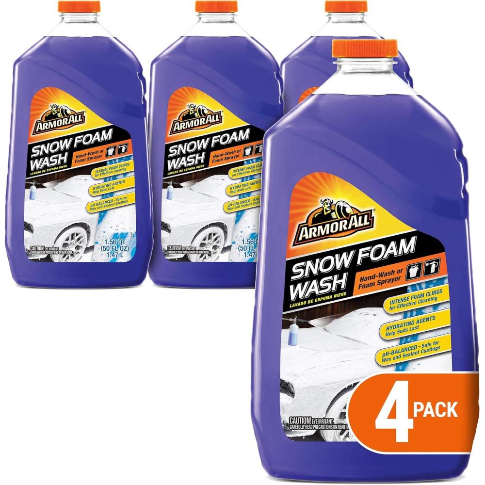 Armor All Snow Foam Car Wash lets you turn your driveway into a car wash. Thick, intense clinging foam helps this Armor All car wash stick to your vehicle throughout the washing process to safely loosen dirt for effective cleaning, and it contains hydrating agents to keep the car washing foam wetter with longer-lasting suds. This pH balanced foaming car wash is safe for use on wax and sealant coatings for versatile use on a variety of vehicles. Armor All Snow Foam car wash soap delivers thick, long-lasting foam, whether you prefer the enjoyment of washing by hand, or car wash foam sprayer. Simply use this foam car wash as directed to clean all vehicle exterior surfaces, including windows. Help keep your car looking and feeling like new with Armor All.