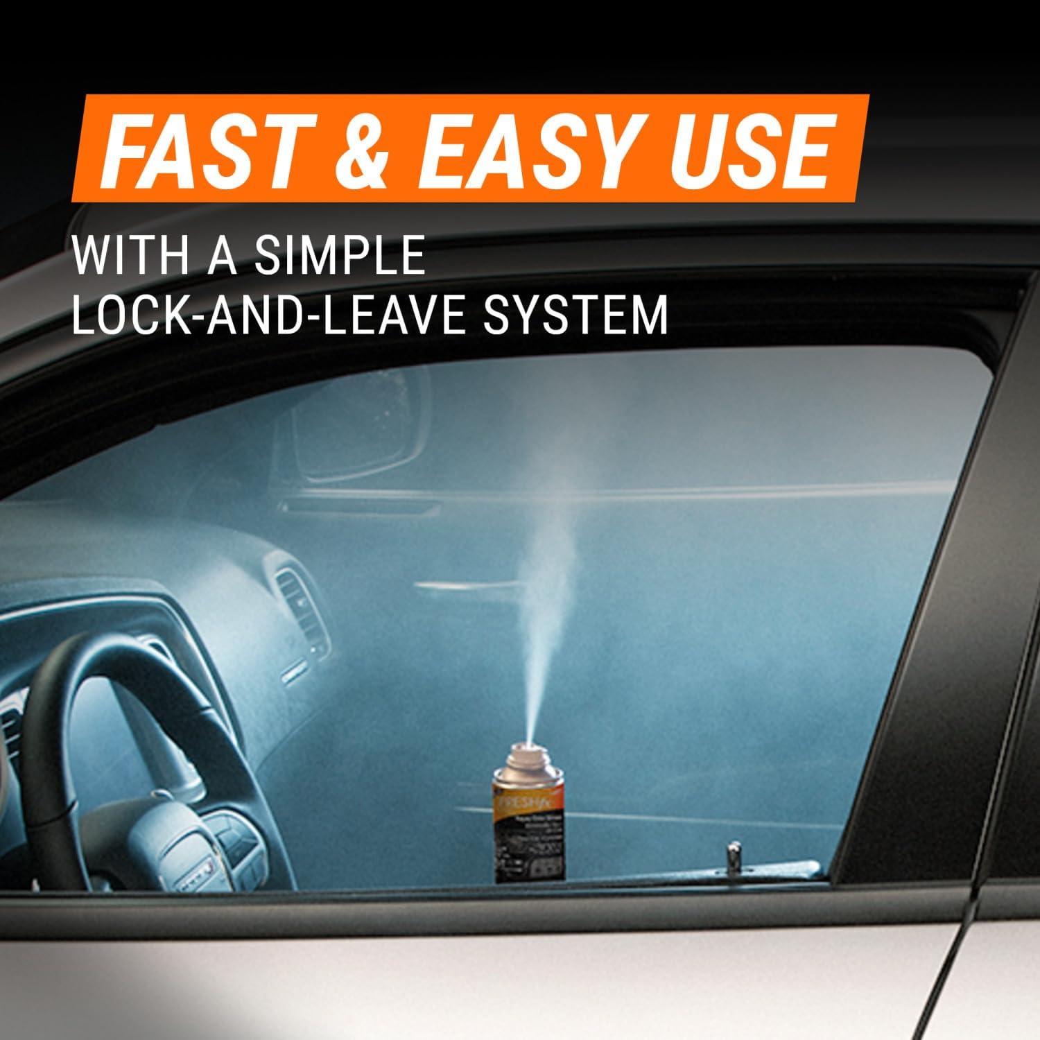 Armor All Rapid Odor Eliminator Fogger in New Car scent helps refresh the inside of your car and vent system. A fresh and clean scent suitable for any vehicle, the New Car scent brings you back to the day your car was new and fresh off of the line with an airy combination of leather and clean new car notes. Featuring a simple 'lock and leave' system, this fogger is designed to eliminate odor in the A/C system in just 10 minutes. No tools or mechanical expertise is needed. To use, first start the engine. Next, turn on the air conditioner and set the fan speed to maximum with the recirculation setting on and close all windows. Remove cap, point away from face and press down on the nozzle to release fogger spray. Place fogger in the center of the vehicle interior. Exit vehicle, close all doors and wait for 15 minutes while Fogger fully depletes. Open doors, turn off air conditioner and engine, allowing vehicle to vent for 5-10 minutes.