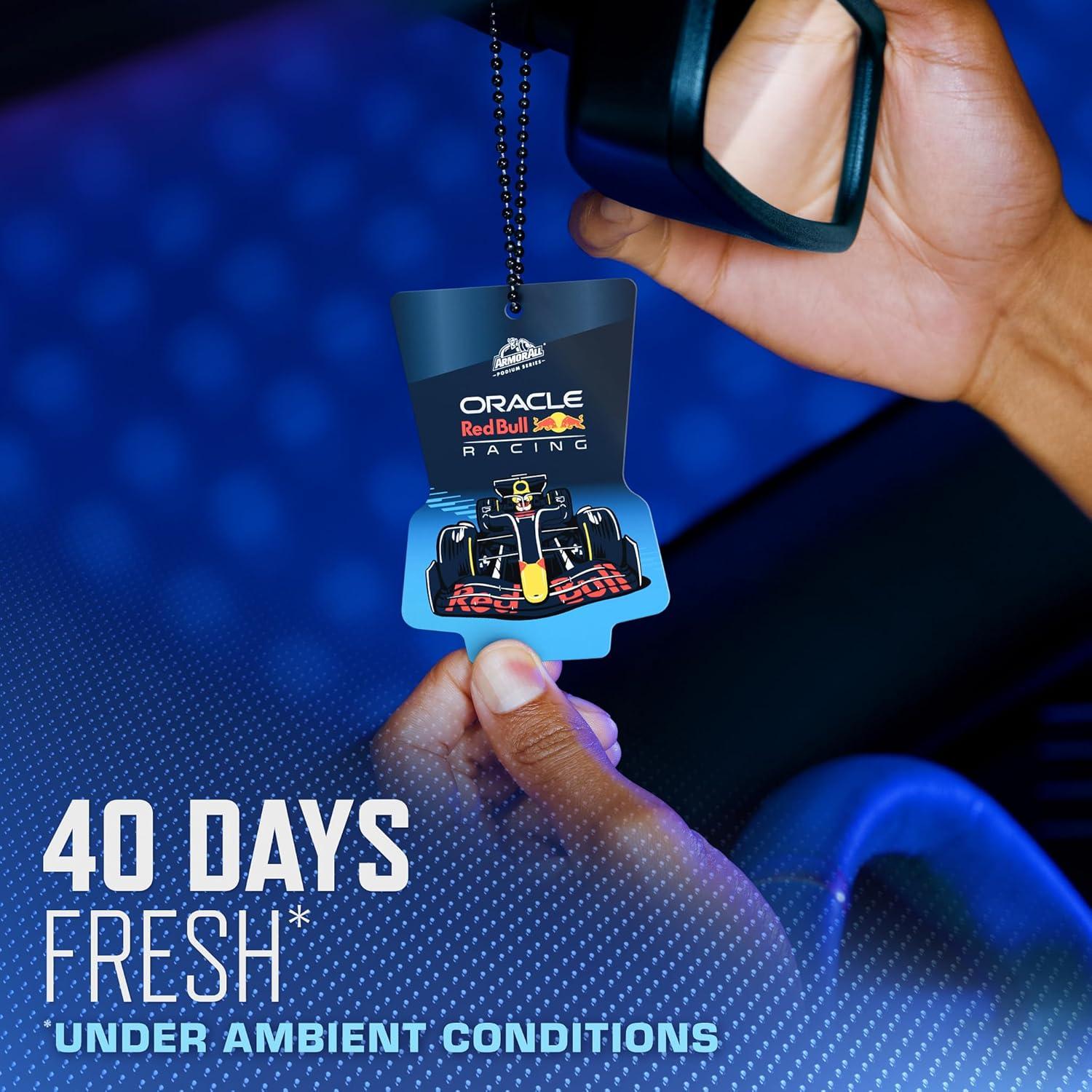 RACING-INSPIRED DESIGN: A premium car air freshener that easily hangs from your rearview mirror and features a helmet on one side and the Oracle Red Bull Racing logo on the other side