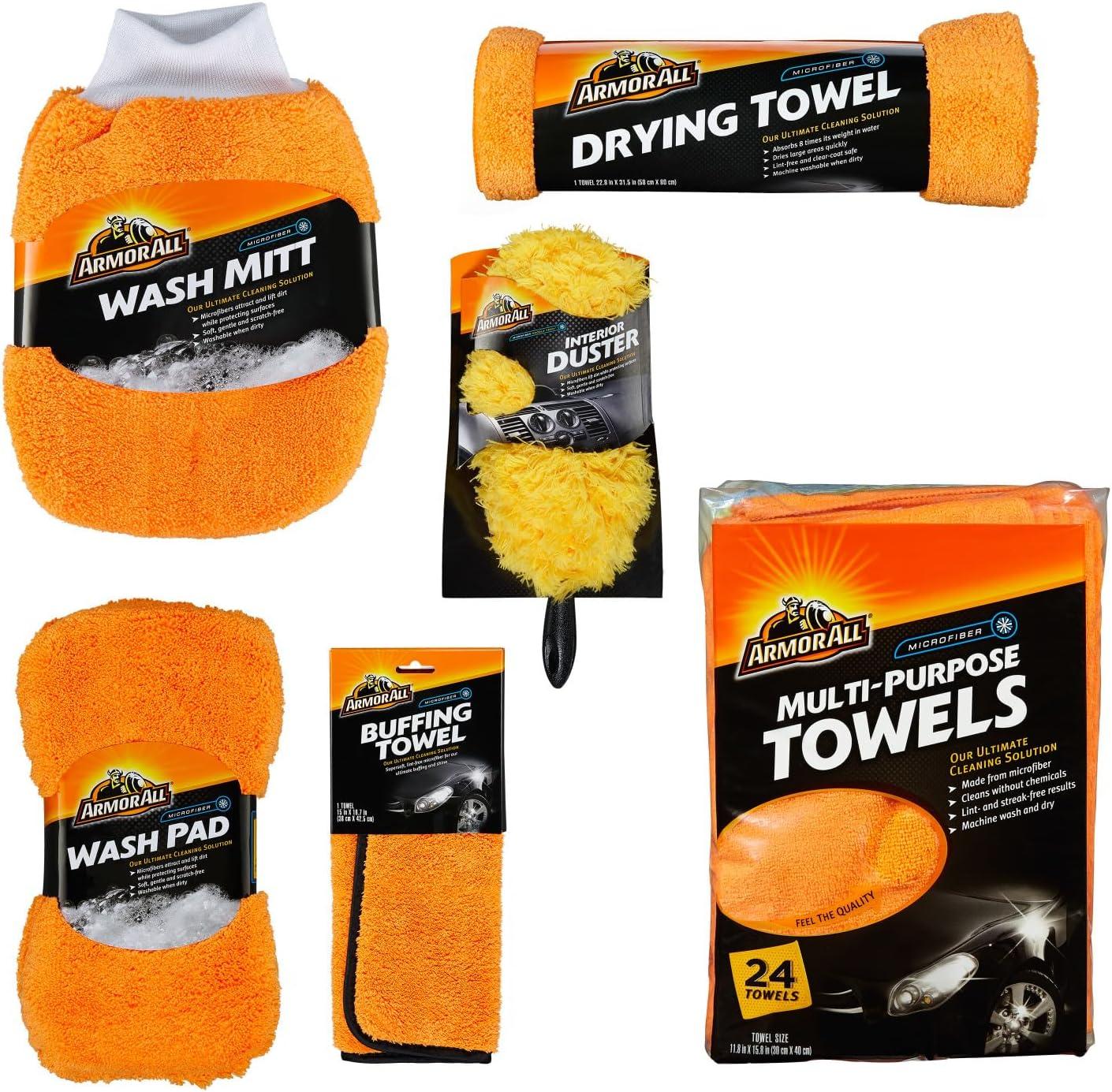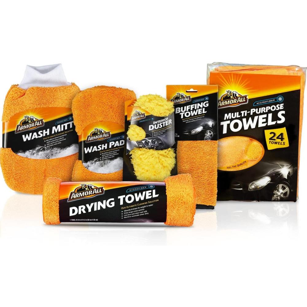 Armor All Microfiber Car Wash and Car Detailing Kit is designed to make it easier to keep your car in showroom condition. The auto detailing supplies lift dirt while protecting your vehicle's surface. The included car wash mitt and car wash pad are gentle to keep your car's finish scratch free. The car drying towel, buffing towel and multipurpose microfiber car towels are highly absorbent for streak free shine. This car detailing kit also includes an auto duster for removing dust from dry surfaces. This Armor All car detailing and car wash kit is the perfect addition to your car care supplies.