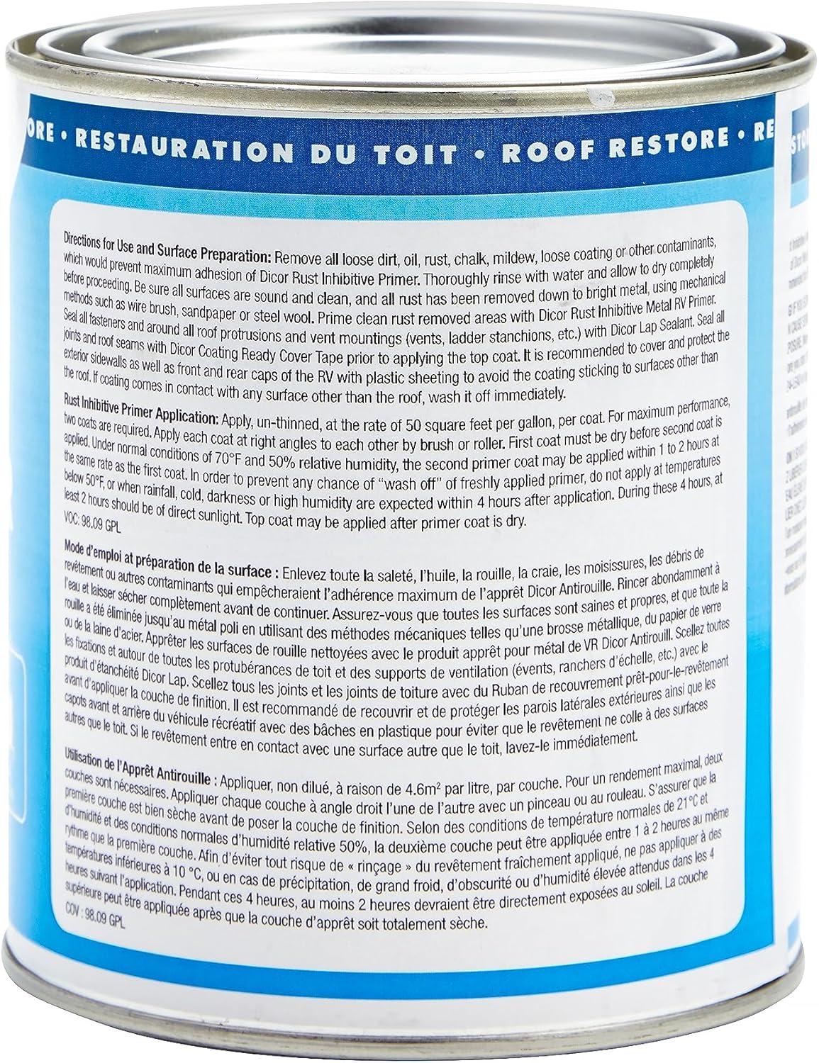 Dicor RP-FCP-1 Fiberglass Roof Coating System - 1 Gallon - Protects Against Environmental Damage(White Metal Roof Rust Inhibitive Primer)