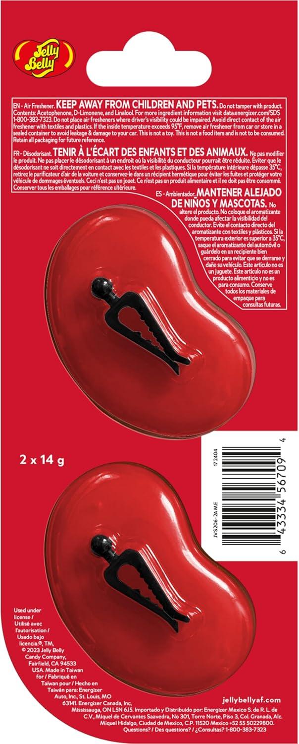 Jelly Belly Duo Car Air Freshener Vent Clips, Tutti-Fruitti Scent, 2 Pack(Very Cherry)